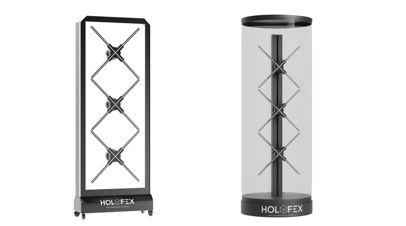For brands wanting a true hero installation, HoloAffect can also be produced in larger enclosed formats such as cylinders, including human-sized cylinders for large enclosed holographic experiences.